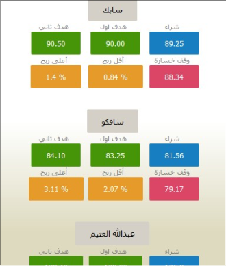 جدولين مع امكانيات (البحث - تغيير الترتيب - تعديل التاريخ) تفصل الاسهم من حيث الافضلية والوضع العام لكل من : الاتجاه - السيولة - التجميع - فرص قريبة - فرص بعيدة - خطورة وأمان السهم ، نسب اراء الشراء والبيع اليوم وأمس ، الرؤية ، فارق كمية التداول، التغيير السعري عن أمس ، وضع السهم ، احتمالية الصعود.